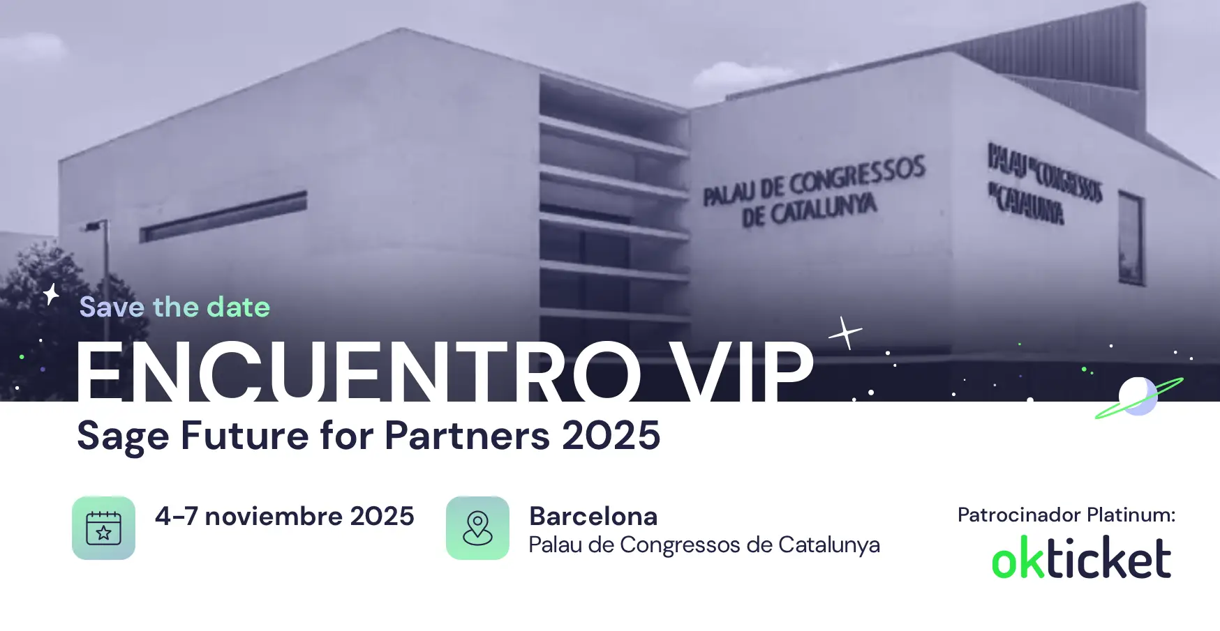 La innovación no espera, y por eso en Okticket no queremos perdernos los principales eventos tecnológicos. Del 4 al 7 de noviembre estaremos en Barcelona participando en Sage Future for Partner 2025, el evento de referencia para el ecosistema de partners Sage en la región EMEA (Europa, Oriente Medio y África).